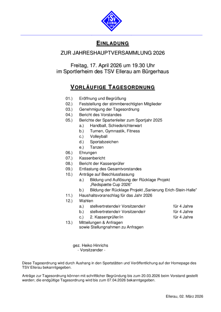 Vorl Tagesordnung JHV 20262. März 2026 https://www.tsv-ellerau.de/wp-content/uploads/2020/09/logo.png 0 0 Andrew https://www.tsv-ellerau.de/wp-content/uploads/2020/09/logo.png Andrew2026-03-02 13:08:392026-03-02 13:08:39Vorl Tagesordnung JHV 2026